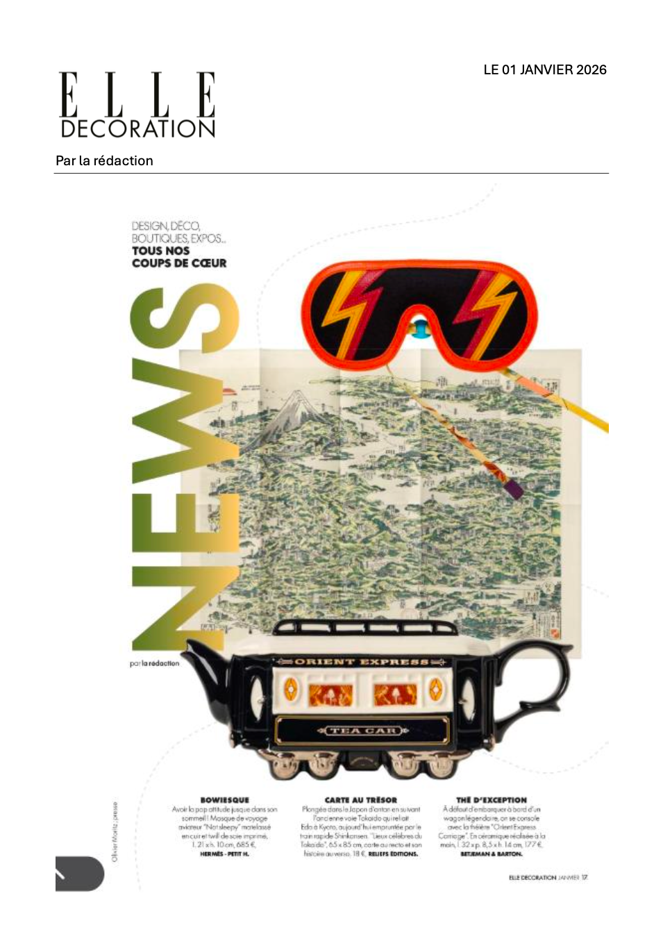 Accueil / Presse / ELLE DÉCORATION 21 mars, 2024 ELLE DÉCORATION Novembre 2025 Décembre 2024 - Hors série Décembre 2024 Juillet - Août 2024 Juin 2024 Mai 2024 Avril 2024 Mai 2023 Mai 2022 Décembre 2019 hors série Elle Déco Partager Partager sur Facebook Épingler Épingler sur Pinterest