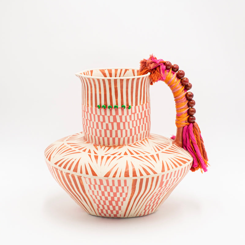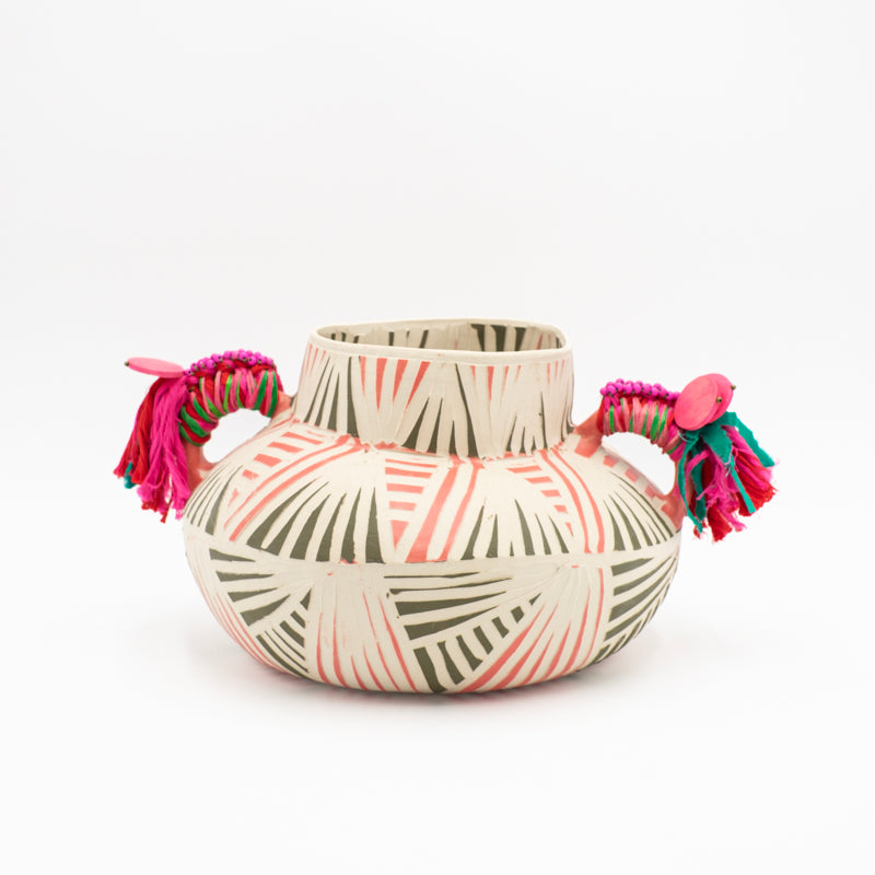 The mixed media used in each piece, the naive patterns and the strong use of color is what gives Anna’s work its personality and unique language.