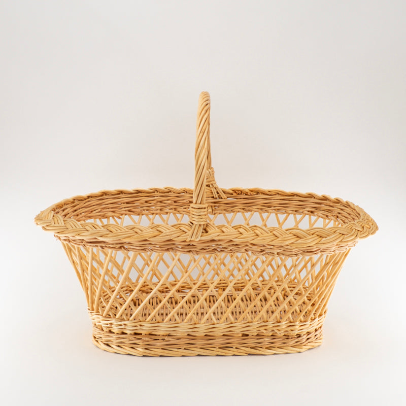 Le Panier en jour croisé en osier conjugue authenticité, élégance et praticité. Idéal pour transporter vos provisions ou récoltes, et peut devenir un objet décoratif unique, sublimé par ses bords nattés et la finesse de sa finition.