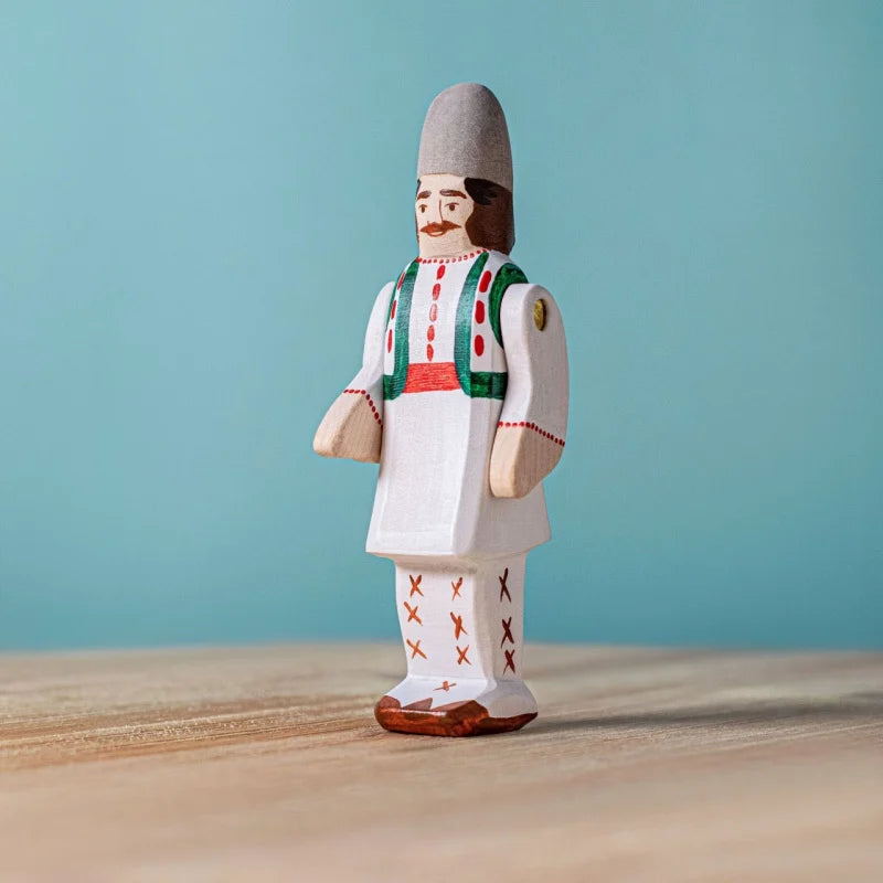 This peasant is a charming wooden toy inspired by classic Romanian folklore.